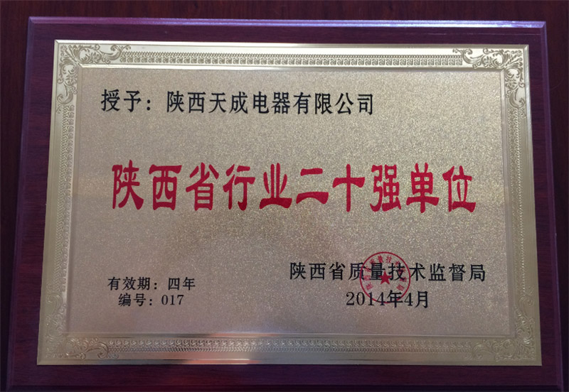 2014年行业20强证书